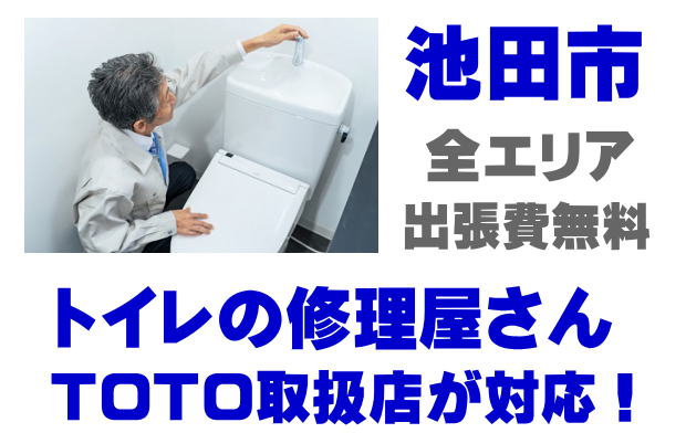 池田市でTOTO製トイレの修理業者をお探しなら当社までお気軽にお問い合わせください。トイレ便器の水漏れ、タンクの故障、便座の修理などTOTO製トイレに関するトラブルなら何でもご相談ください。