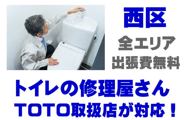 西区でTOTO製品のウォシュレットの故障、トイレつまり、便器タンクの水漏れ修理はTOTO取扱店へお問い合わせください。